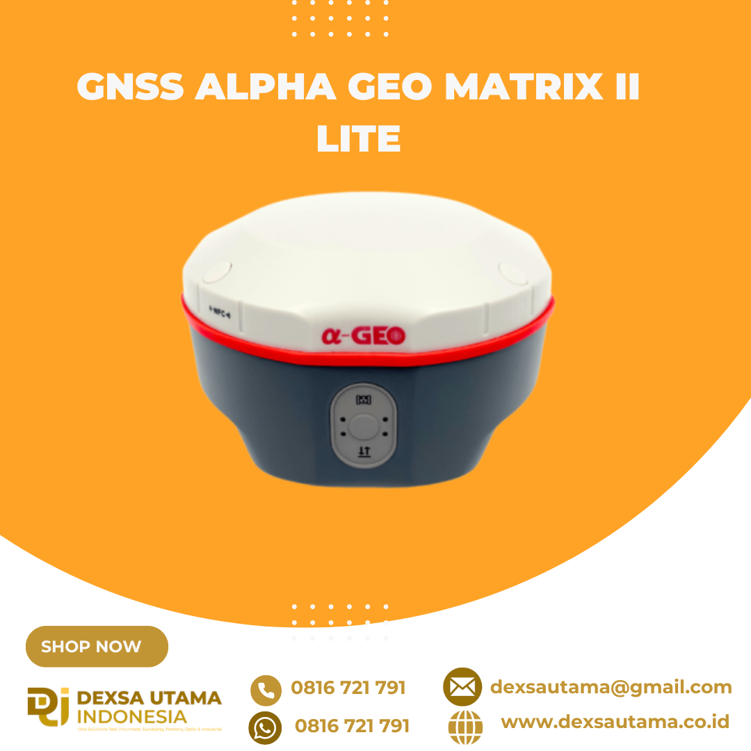 GNSS Alpha Geo Matrix II Lite adalah penerima GNSS generasi terbaru yang dirancang untuk memberikan solusi survei yang ringkas, akurat, dan efisien. Dengan desain yang kompak dan ringan, perangkat ini sangat ideal untuk berbagai aplikasi survei, mulai dari pemetaan lahan, konstruksi, hingga pemantauan infrastruktur.